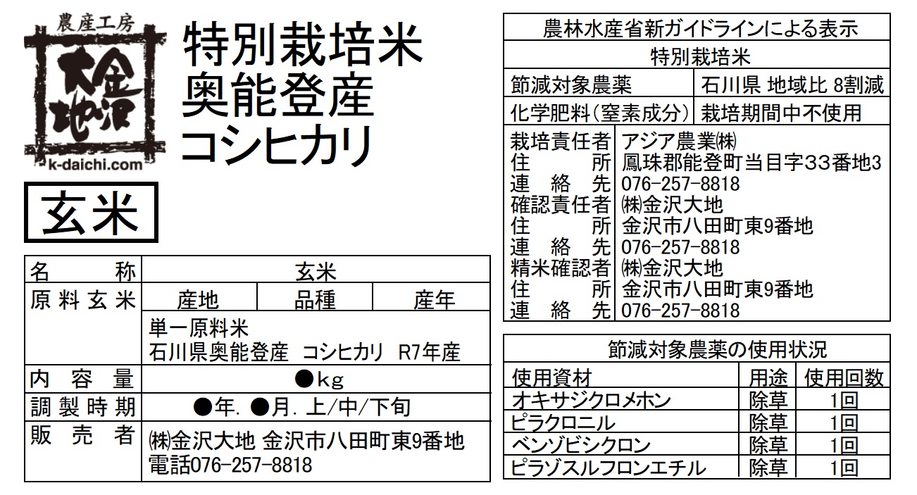 有機JAS規格では、原則として、化学合成された農薬の使用は禁止されていますが、天然系農薬やフェロモン剤など、条件付きで使用が可能な農薬もあります。この点、金沢大地の有機米は、有機JAS規格で許容されているものも含め、農薬および化学肥料は一切使用しておりません。有機栽培の中でも、厳格な基準で栽培しています。