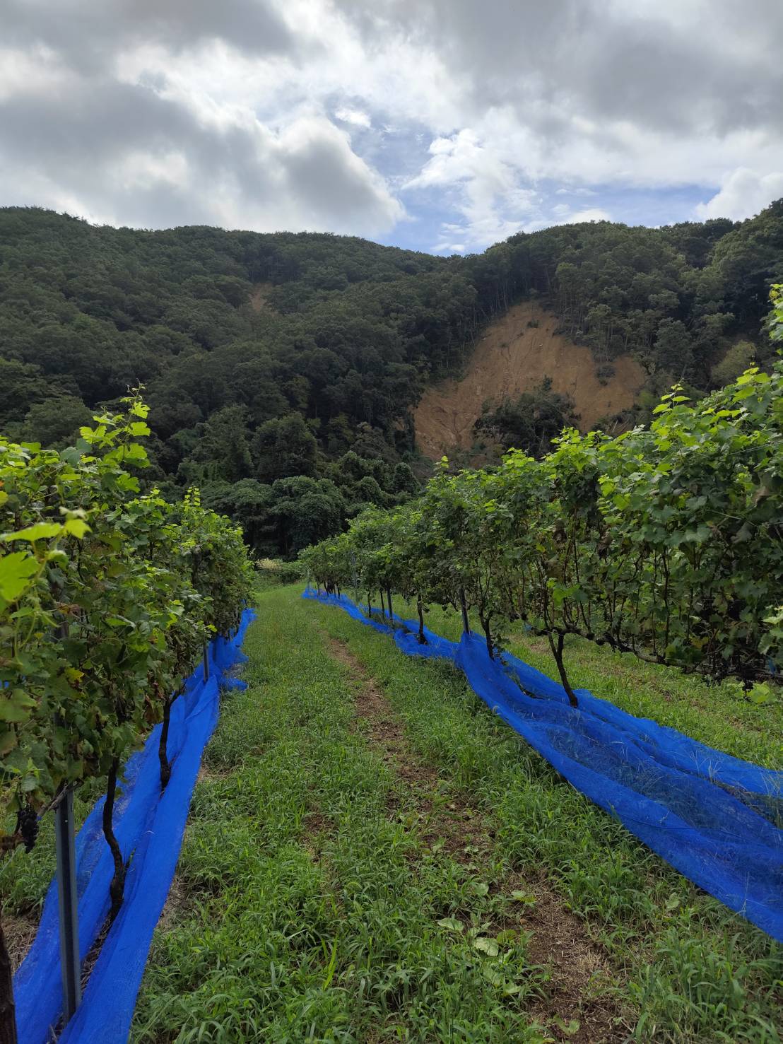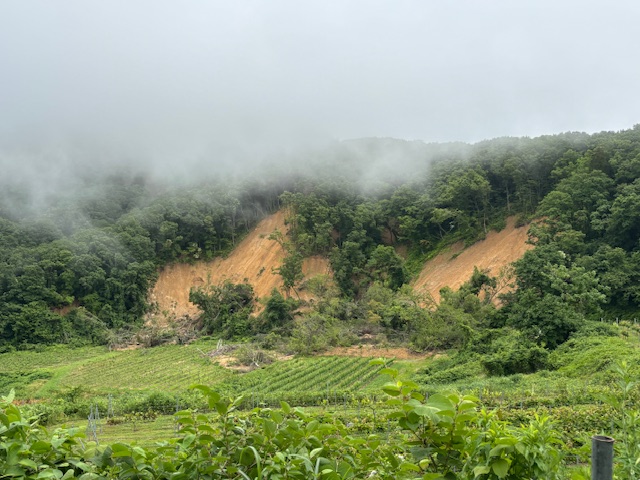 ブドウ畑にも土砂崩れの傷跡などが生々しく残りますが、それでも、農場スタッフが道路や畑の損傷を修復しながら、農作物や農機などを運べるように工夫して、農地を大切にし、できる限りブドウの世話を続けてくれています。