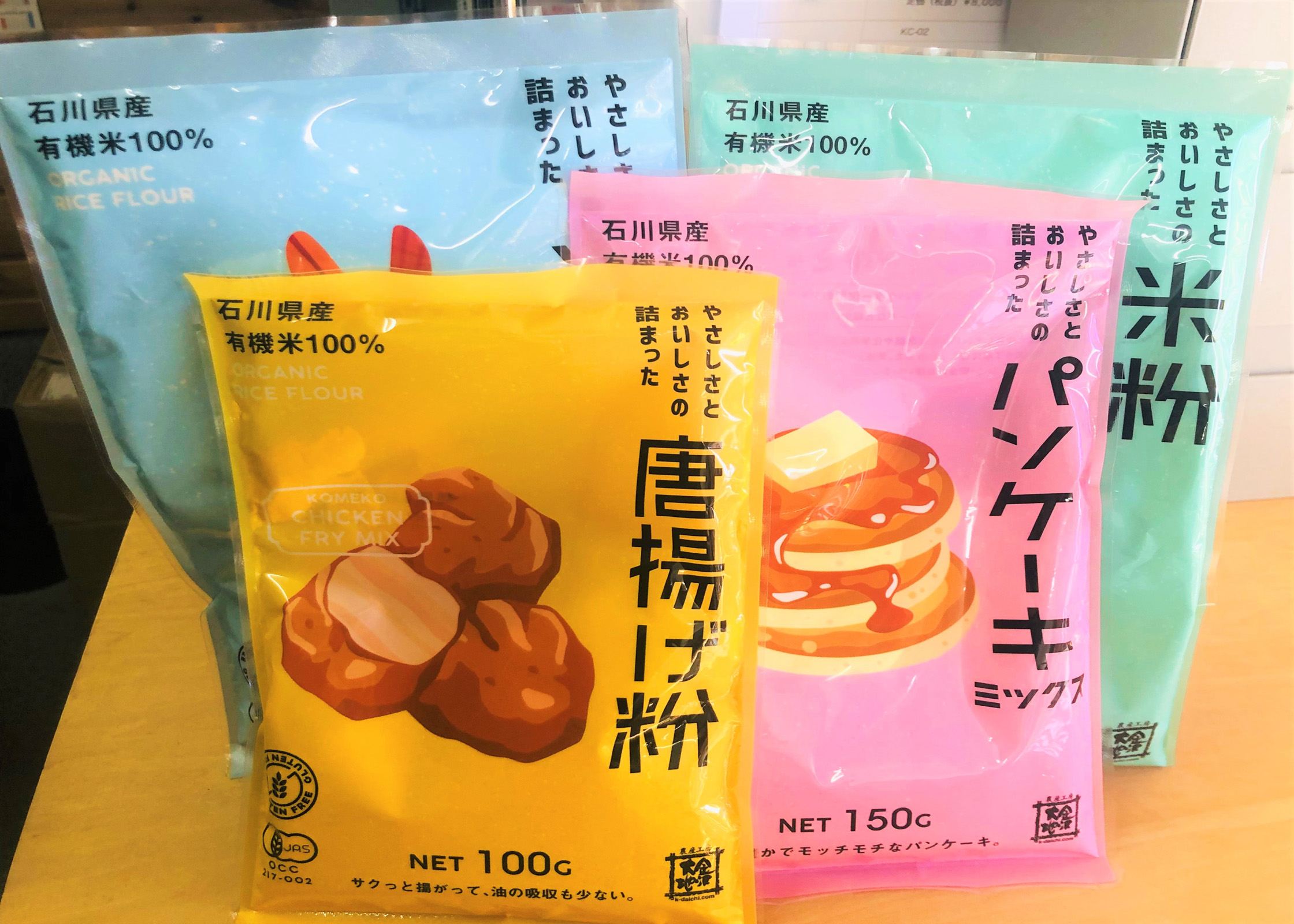 2023年2月、新発売の米粉シリーズ『やさしさとおいしさの詰まった米粉』。石川県産有機米100%でつくる、金沢大地の米粉シリーズです。